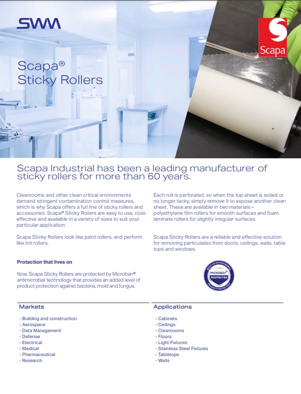 For even better control of your environment, use Sticky Roller products together with Scapa Trim Tack® Sticky Mats.